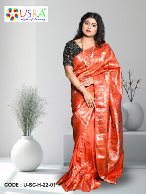Originating from the land of Bengal, known for its vibrant culture and artistic legacy, Biswa Bangla Silk Sarees are crafted using the finest quality silk threads, meticulously sourced and handpicked by skilled artisans. The weaving process itself is a labor of love, with each saree taking days or even weeks to complete, ensuring that every piece is a masterpiece in its own right.